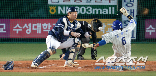 그런데 이 순간 황당한 일이 벌어졌다. 이원석이 던진 공이 홈으로 슬라이딩을 하면서 자연스럽게 어깨 위로 펼친 정병곤의 손목에 맞으면서 홈플레이트 우측 파울지역으로 굴러가버린 것이다. 갑자기 공의 방향이 틀어지는 바람에 양의지가 손을 쓸 수 없었다.