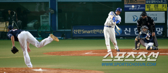 | 삼성과 두산의 2013 한국시리즈 6차전이 31일 대구구장에서 열렸다. 6회말 무사 1루 삼성 채태인이 두산 니퍼트의 투구를 받아쳐 좌중간 담장을 넘어가는 재역전 2점홈런을 날리고 있다. 대구=허상욱 기자 wook@sportschosun.com |