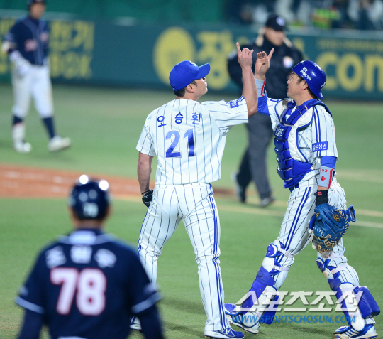 31일 대구시민구장에서 2013프로야구 한국시리즈 6차전 삼성과 두산의 경기가 열렸다. 삼성이 두산에 6대2로 승리했다. 경기를 마무리 지은 오승환이 진갑용과 하이파이브를 나누고 있다. 대구=송정헌 기자 songs@sportschosun.com/2013.10.31