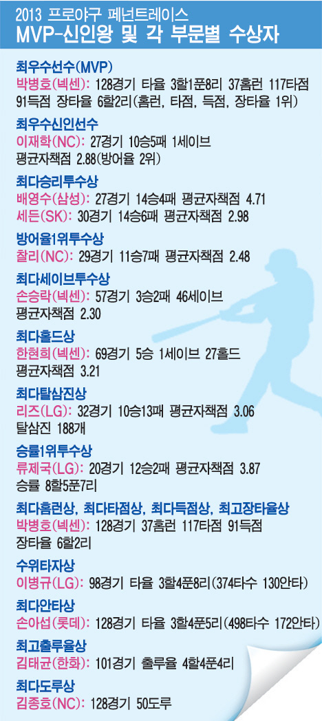 2013 프로야구 MVP, 최우수신인선수 및 각 부문별 시상식 무대. 수상 소감을 말하는 선수들이 서로서로에게 고맙다는 말을 잊지 않았다. 한 시즌 동안 적수로 지내온 서로에게 도대체 뭐가 고맙다는걸까.
