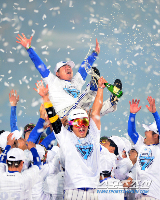 | 삼성선수들이 3년 연속 한국시리즈 우승을 한 뒤 류중일 감독을 헹가래치고 있다. 송정헌 기자 songs@sportschosun.com |