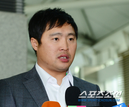 한국시리즈 우승팀 삼성이 대만에서 열리는 2013 아시아시리즈에 참가하기 위해 13일 인천공항을 통해 출국했다. 박한이가 인터뷰를 하고 있다. 인천공항=정재근 기자 cjg@sportschosun.com/2013.11.13/
