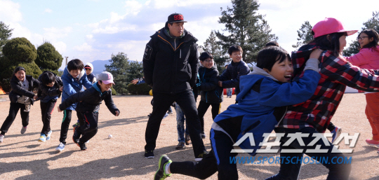 LA 다저스의 류현진(26)이 18일 쉐라톤 그랜드 워커힐 캠핑존에서 광진구 사회복지센터 20명 어린이들에게 재능 기부 행사를 펼쳤다. 쌀쌀한 날씨 속에서도 약 1시간 동안 어린이들과 스트레칭과 캐치볼 등을 하며 함께 뛰었다. 행사를 마친 뒤엔 협찬용품을 선물로 증정하고, 점심을 같이 먹으며 즐거운 시간을 보냈다.