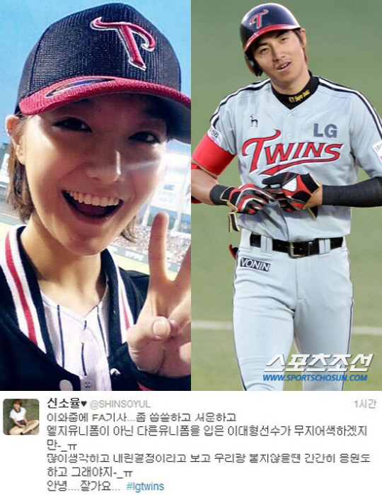 해당 글은 신소율이 FA(자유계약선수, Free Agent)신분으로 기아와 계약 기간 4년에 총액 24억 원(계약금 10억 원, 연봉 3억 원, 옵션 2억 원)으로 계약을 맺은 이대형의 소식에 안타까운 마음을 표현한 것.