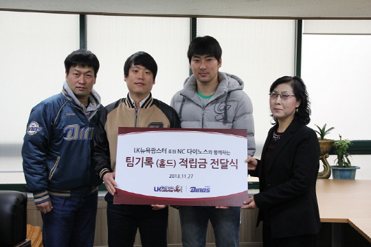NC 다이노스가 27일 오전 경남 창원시에 위치한 경남시각장애인복지연합회를 찾아 홈경기 기록(홀드) 연계로 적립된 적립금을 전달했다.