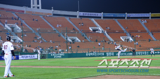| 관중이 썰렁한 사직구장의 모습. 부산=최문영 기자 deer@sportschosun.com |