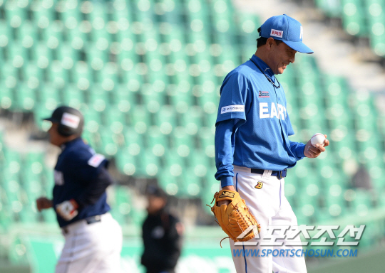 직구가 잘 통하지 않자 변화구 위주로 갔다. 현역 시절을 방불케 하는 낙차 큰 커브가 돋보였다. 여기에 슬라이더, 포크볼 등 다양한 변화구를 섞었다. 1사 1,2루 위기를 맞았지만, 실점은 없었다. 마지막 아웃카운트는 투수 앞 직선타구. 공을 던진 뒤 날렵한 동작으로 타구를 낚아내는 장면이 여느 현역선수 못지 않았다.