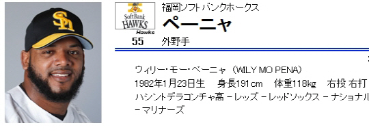 페냐는 메이저리그 신시내티, 시애틀 등에서 7년간 뛴 후 2011년말 소프트뱅크와 계약했다. 당시 2년 연봉 500만달러.