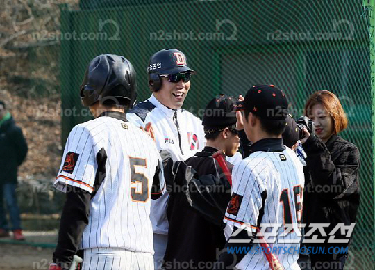 김현수 이원석 등 두산 선수들이 8일 충주성심학교 야구부를 찾아 뜻깊은 시간을 가졌다.