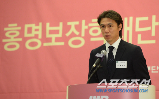 홍명보장학재단 창립 10주년 기념식이 10일 서울 팔래스호텔에서 열렸다. 홍명보 이사장이 10주년 인사말을 하고 있다. 전준엽 기자 noodle@sportschosun.com/2012.12.10/
