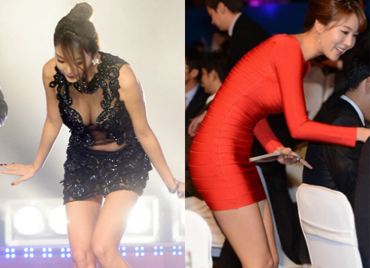 이날 이수정은 가슴라인은 물론 뱃살 등 몸매가 고스란히 드러나는 파격적인 시스루 드레스를 입고 등장해 시선을 모았다. 특히 이수정은 아찔한 의상을 입은 채 등장하다 발을 헛디뎌 넘어질 뻔한 위기를 겪기도 했다.