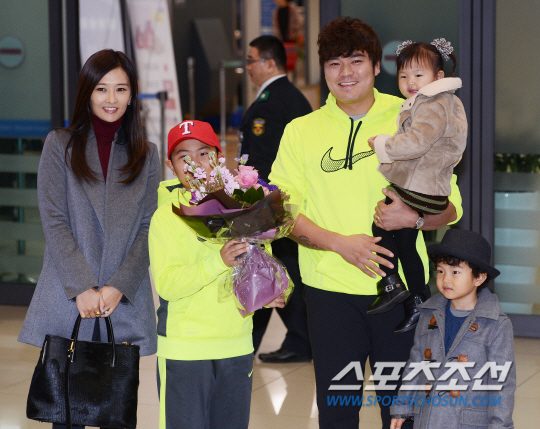 추신수가 30일 금의환향했다. 무려 13개월만에 귀국. 아시아나항공편으로 오전 6시30분쯤 도착한 추신수는 부인 하원미씨와 아들 무빈,건우 군, 딸 소희 양과 함께 오전 7시쯤 인천공항 입국장을 나왔다. 부산에서 올라온 아버지 추소민씨가 최고의 선수가 된 아들과 반가움의 포옹을 했고, 어머니 박유정씨는 축하 꽃다발을 전달했다.