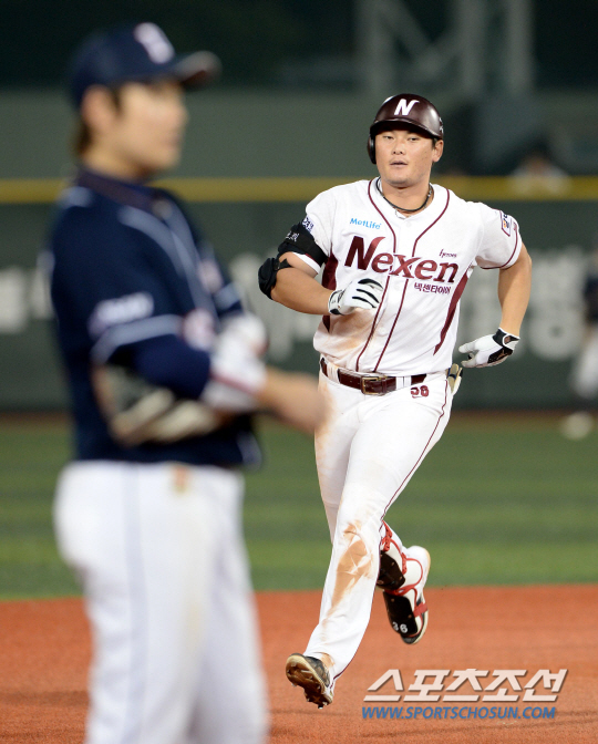 한 경기 반 차 3-4위를 달리고 있는 넥센과 두산의 주말 2연전 두번째 경기가 8일 목동구장에서 열렸다. 7회말 넥센 이성열이 두산 핸킨스의 투구를 받아쳐 우측담장을 넘어가는 동점 솔로홈런을 날렸다. 기쁜 표정으로 베이스를 도는 이성열. 목동=허상욱 기자 wook@sportschosun.com/2013.09.08/