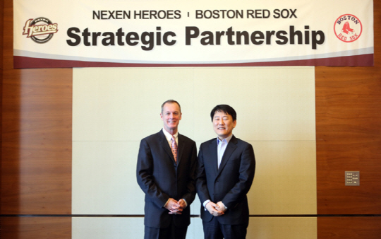 넥센 히어로즈는 5일 서울 영등포 코트야드 메리어트호텔에서 2013 월드시리즈 챔피언팀인 보스턴레드삭스와 전략적 파트너십을 체결하였다. 히어로즈 이장석 대표이사와 보스턴 레드삭스 앨러드 배어드(53) 부사장이 참석한 이번 체결식에서 양 구단은 전략적 파트너십을 통해 팜 시스템 구축 노하우와 운영방식, 세이버 매트릭스, 선수 분석 및 평가 시스템, 트레이닝 기법 등 현재 보스턴레드삭스가 실행중인 선진 기법 등을 직접 전수받기로 합의하였다.