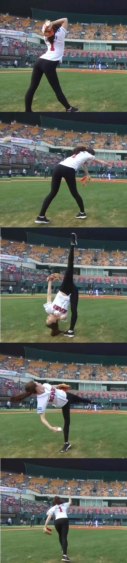 전 체조 국가대표 선수 신수지의 일루젼 시구가 메이저리그 최고 화제의 장면으로 꼽혔다.
