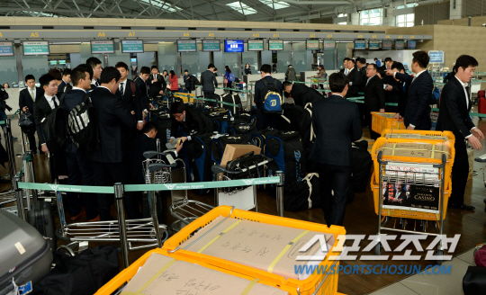 또 하나 재미있는 점은 고참들과 후배들의 출국 전 자유시간이다. 한 달 반이나 전지훈련을 떠나는 만큼, 각종 장비만 해도 엄청난 부피를 차지한다. 그래도 선후배의 체계는 있는 법. 후배들은 짐을 부칠 때 끝까지 남아있는 반면, 선배들은 빠르게 발권을 마치고 개인 시간을 보내는 모습이었다.