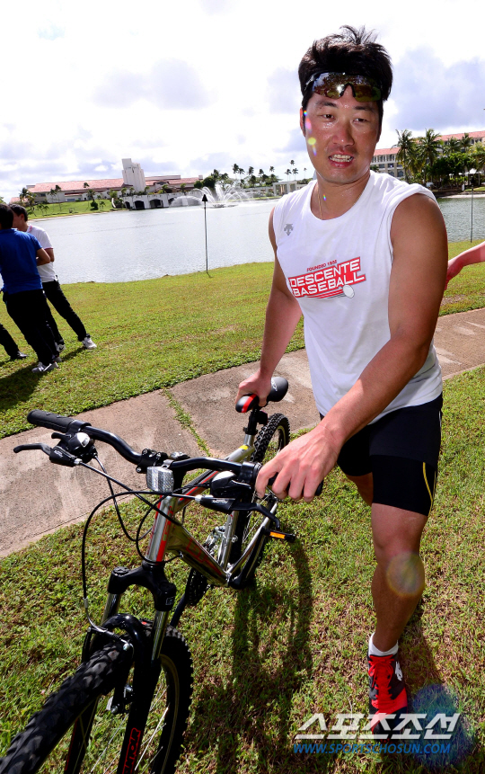 삼성라이온즈 선수단이 괌에 위치한 레오팔레스 리조트에 1차 전지훈련 캠프를 차렸다. 삼성의 1차 괌 전훈 캠프는 2월 7일까지 이어진다. 레오팔레스 리조트는 숙박시설은 물론 3개의 야구장과 연습장을 비롯해 축구, 골프, 수영 등이 가능한 종합 스포츠타운으로 조성되어 있다. 리조트 부지가 여의도 면적에 육박할 정도로 넓다 보니, 숙소에서 훈련장까지 이동 거리만도 500여 미터에 달한다. 오전 훈련에 참가하기 위해 훈련장으로 향하는 선수들의 각양각색 출근(?) 모습을 담아봤다. 삼성과 함께 훈련중인 오승환이 자전거를 이용해 이동하고 있다. 괌=송정헌 기자 songs@sportschosun.com