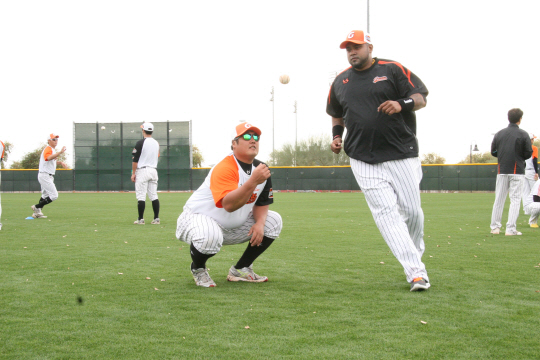 롯데 구단의 미국 애리조나주 피닉스 훈련 캠프에는 두 명의 거구가 있다. 롯데가 새롭게 영입한 베네수엘라 출신의 좌타자 루이스 히메네스(32)와 두산에서 FA로 이적한 최준석(31)이다.