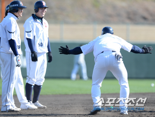 1번 타자 이종욱이 떠난 빈자리를 메꿔야 하는 정수빈이 이날 타격 훈련에서 홈런을 세 방이나 쳤다. 수비와 주루에서는 최고지만 타격에서 아쉬움을 보여준 정수빈은 이번 전훈에서 누구보다 타격훈련을 열심히 하고 있다. 비록 훈련이었지만 홈런을 연거푸 쳤다는 사실에 정수빈도 놀랐고 동료들도 환호성을 질렀다.