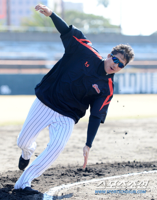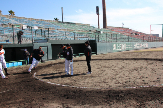 지름 4.5m의 원을 그려놓고 뛰는 훈련을 시켰다. 주루 플레이 중 발생할 수 있는 오버런을 방지하기 위한 목적이다. 앞으로 계속 원의 지름을 줄여 나가면서 훈련강도에 변화를 줄 예정이다.