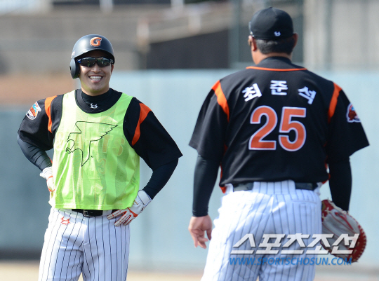 2년간 함께 했던 홍대갈 트리오의 절정은 2010년이었다. 3명의 2010년 성적을 살펴보면 그 위력을 금방 알 수 있다. 홍성흔이 26홈런 116타점(타율 0.350), 이대호가 44홈런 133타점(타율 0.364), 가르시아가 26홈런 83타점(타율 0.253)을 기록했다. 셋이 합작한 홈런만 96개로 그해 롯데 팀 홈런(185개)의 52%를 차지했다. 또 합작한 타점만 332점이다. 전문가들은 2010년의 홍대갈 트리오는 타석에 들어서면 가득 차 보이는 느낌이 있었다고 말한다. 셋 다 덩치에서 기죽지 않았다. 홍성흔은 96㎏, 이대호는 130㎏, 가르시아는 100㎏이었다. 키는 모두 1m80을 넘었다. 롯데 자이언츠 선수단이 12일 일본 가고시마 가모이케 구장에서 스프링캠프 훈련을 했다. 투수와 내야수들의 주자 견제 수비훈련을 돕기 위해 손아섭이 형광색 조끼를 입고 주자로 뛰고 있다. 가고시마(일본)=정재근 기자 cjg@sportschosun.com/2014.02.12/