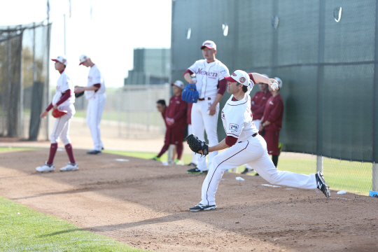 | 애리조나 캠프에서 불펜피칭을 하고 있는 투수들. 사진제공=넥센 히어로즈 |