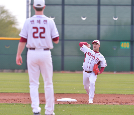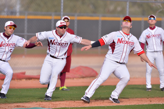 히어로즈 선수단은 20일 오키나와로 출발해 연습경기 위주로 2차 전지훈련을 치른 뒤 다음달 5일 귀국한다. 히어로즈 선수들의 애리조나 전지훈련 모습을 모았다.지난해 정규시즌 3위로 팀 출범 후 처음으로 포스트 시즌에 진출한 히어로즈는 올 시즌 우승을 목표로 하고 있다.