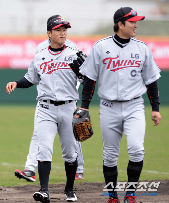 LG 트윈스 선수단이 일본 오키나와 이시카와 구장에서 전지훈련을 펼치고 있다. 19일 진행된 훈련에서 외야 수비훈련을 마친 임재철과 이진영이 덕아웃으로 향하고 있다. 미국 애리조나 전지훈련에서 체력 강화와 컨디션 올리기에 초점을 맞춘 훈련을 펼쳤던 LG는 일본 오키나와 전지훈련에서 타격과 수비 훈련에 집중하며 각 구단과 연습경기를 가질 예정이다. 오키나와(일본)=허상욱 기자 wook@sportschosun.com/2014.02.19/ |