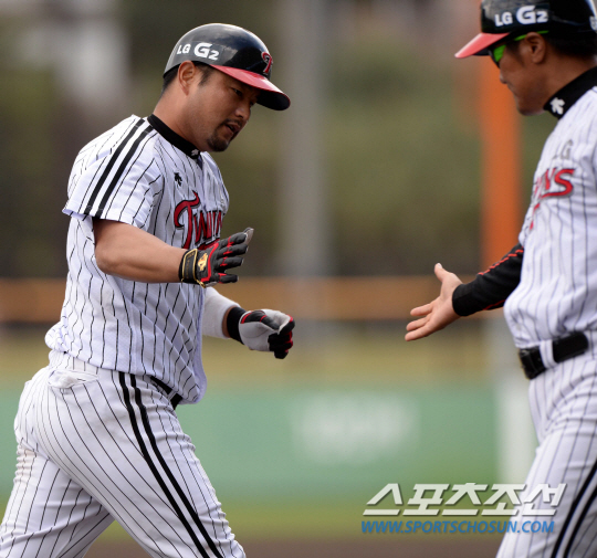 일본 오키나와에서 전지훈련 중인 LG 트윈스 선수단이 20일 일본 오키나와 나하 셀룰러 스타디움에서 요미우리 자이언츠와 연습경기를 가졌다. 3회말 LG 공격, 최경철이 좌월 솔로홈런을 치고 베이스를 돌고 있다. 오키나와(일본)=허상욱 기자 wook@sportschosun.com/2014.02.20