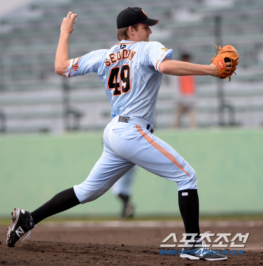 SK 와이번스를 거쳐 지난 겨울 요미우리 자이언츠에 입단한 크리스 세든이 20일 일본 오키나와 셀룰러스타디움에서 벌어진 연습경기 LG 트윈스전에 등판했다. 첫 실전등판이었다.