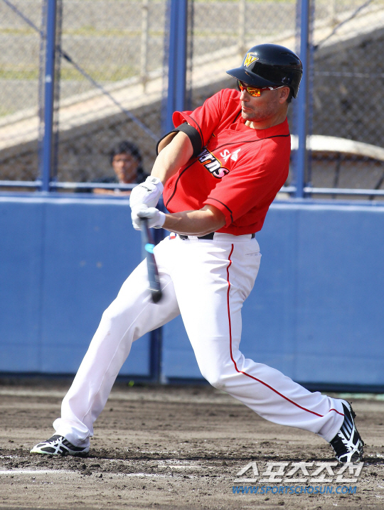 | SK 외국인 타자 루크 스캇이 21일 삼성과의 연습경기에서 캠프 첫 홈런을 터뜨렸다. 사진제공=SK 와이번스 |
