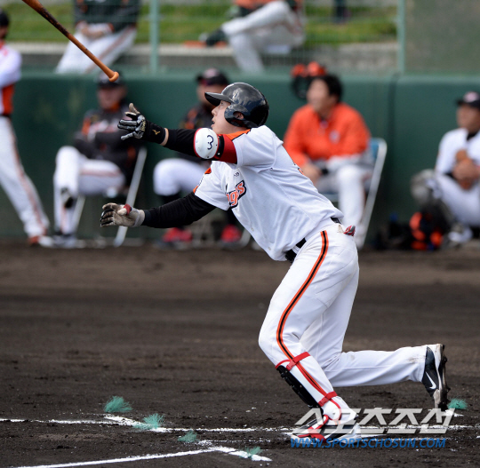 한화는 21일 일본 오키나와 고친다구장에서 LG와 연습경기를 치렀다. 팽팽한 타격전 끝에 8대8 무승부로 끝난 양팀의 경기에서 눈에 띈 선수가 있었으니 한화의 3번-3루수로 출전했던 김회성이었다. 김회성은 이날 경기 선제 투런포 포함, 5타수 2안타를 기록하며 좋은 타격감을 과시했다. 지난 14일 열렸던 SK와의 연습경기 이후 또다시 홈런을 터뜨렸다.