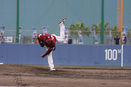27일 요코하마전에 선발 등판해 역투하고 있는 넥섹 히어로즈 금민철. 그는 이날 3이닝 2안타 무실점으로 호투했다. 사진제공=넥센 히어로즈