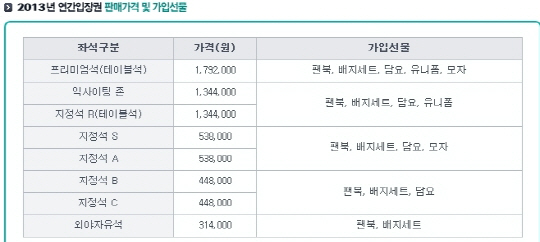 롯데 자이언츠의 2013시즌 연간 회원 입장권 가격.