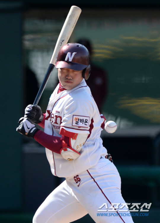 넥센과 두산의 2014 프로야구 시범경기가 9일 목동구장에서 열렸다. 4회말 타석에 들어선 넥센 강지광이 두산 김수완의 투구를 몸에 맞고 있다. 목동=허상욱 기자 wook@sportschosun.com/2014.03.09/ |