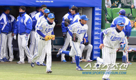 삼성과 KIA가 8일 대구 시민구장에서 시범경기를 펼쳤다. 8일부터 전국 4개 구장에서 프로야구 시범경기가 펼쳐졌다. 오는 23일까지 펼쳐지는 시범경기는 팀 간 2차전으로 각 팀 당 12경기씩을 치른다. 시범경기 첫날은 KIA-삼성(대구구장), 롯데-NC(마산구장), 두산-넥센(목동구장), SK-한화(한밭구장)가 맞붙는다. 경기를 위해 그라운드에 나서고 있는 삼성 선수들. 대구=송정헌 기자 songs@sportschosun.com/2014.03.08 |