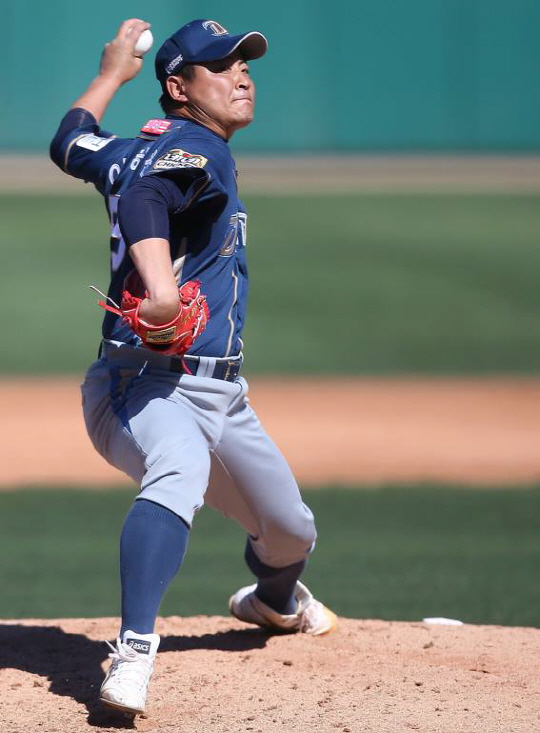 스프링캠프 청백전에 등판해 역투하고 있는 NC 이혜천. 사진제공=NC다이노스