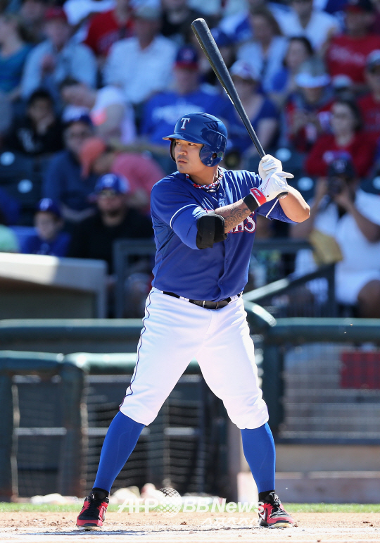SURPRISE, AZ - MARCH 08: Shin-Soo Choo #17 of the Texas Rangers bats against the Los Angeles Dodgers during the spring training game at Surprise Stadium on March 8, 2014 in Surprise, Arizona. Christian Petersen/Getty Images/AFP == FOR NEWSPAPERS, INTERNET, TELCOS & TELEVISION USE ONLY == ⓒAFPBBNews = News1