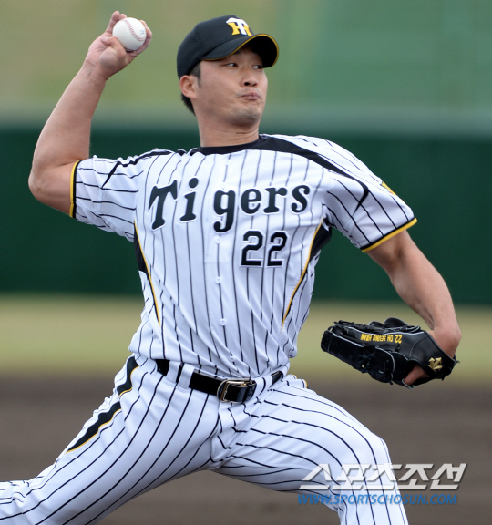 지난 겨울 일본 프로야구 한신 타이거즈 유니폼을 입은 오승환. 한신의 마무리 오승환이 2주 앞으로 다가온 정규시즌 개막에 맞춰 순조롭게 페이스를 끌어올리고 있다. 15일 요코하마 DeNA와의 원정경기에 등판한 오승환은 1이닝을 1안타 무실점으로 막았다. 아웃카운트 3개를 모두 삼진으로 잡을 정도로 구위가 위력적이었다.