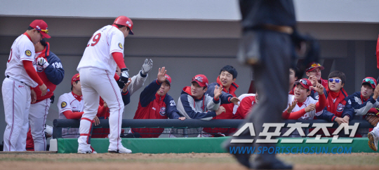 하지만 SK의 추격도 만만치 않았다. 이어진 8회초 SK는 1사 1,2루서 최 정의 적시타로 1점을 만회한 뒤 루크 스캇이 상대 바뀐 투수 박준표를 우중월 스리런홈런으로 두들겨 4-4 동점을 만들었다. 스캇은 이번 시범경기 첫 홈런.