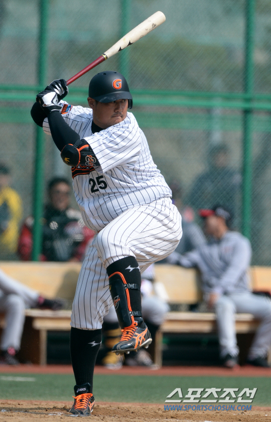 최준석은 19일 김해 상동 LG 트윈스와의 시범경기 1회에 상동구장의 좌중간 산 벽면을 직접 때리는 큰 홈런 타구를 날렸다.