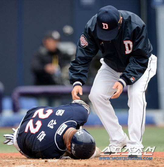 그대로 쓰러진 홍성흔은 고통을 호소한 뒤 팀 동료들의 부축을 받고 곧바로 교체, 라커룸으로 들어갔다. 다행히 큰 부상은 아닌 것으로 밝혀졌다. 아이싱 치료를 하고 있다.