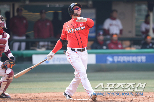 SK 스캇이 같은 메이저리그 탬파베이 레이스 출신인 KIA 서재응을 상대로 2타수 2안타를 때렸다. 최문영 기자 deer@sportschosun.com