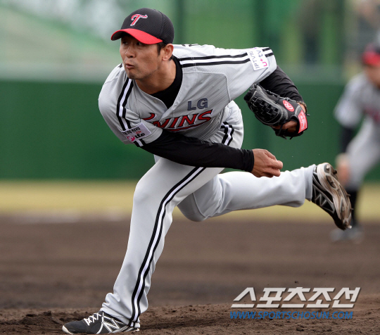 일본에서 전지훈련 중인 LG가 한신 타이거즈와 연습경기를 가졌다. 25일 일본 오키나와 기노자 구장에서 열린 LG와 한신의 연습경기에서 6회말 등판한 LG 김광삼이 힘차게 공을 던지고 있다. 오키나와(일본)=허상욱 기자 wook@sportschosun.com/2014.02.25/
