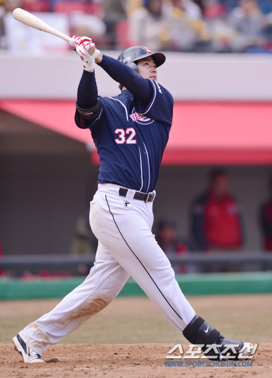 두산 김재환이 23일 인천 SK전에서 시범경기 2호 홈런을 터뜨렸다. 김경민 기자 kyungmin@sportschosun.com