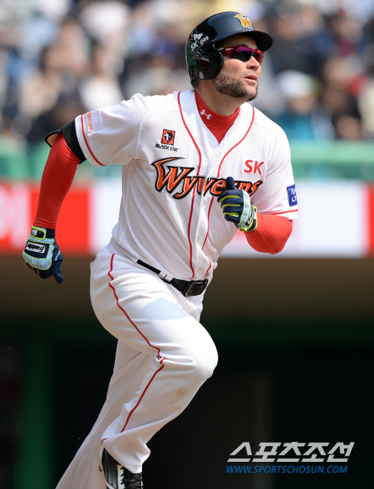 스캇은 23일 인천 문학구장에서 열린 두산과의 시범경기에서 2회 선두타자로 나가 우월 솔로홈런을 터뜨렸다. 두산 에이스 니퍼트를 상대로 초구 직구를 볼로 고른 뒤 2구째 한복판으로 들어오는 146㎞짜리 직구를 그대로 잡아당겨 오른쪽 폴대 안쪽으로 훌쩍 넘겼다. 맞는 순간 홈런임을 직감한 스캇은 타구를 바라보며 천천히 1루로 달려 나갔다. 비거리 115m. 스캇이 시범경기 들어 홈런을 날린 것은 지난 18일 광주 KIA전 이후 5일만이다.
