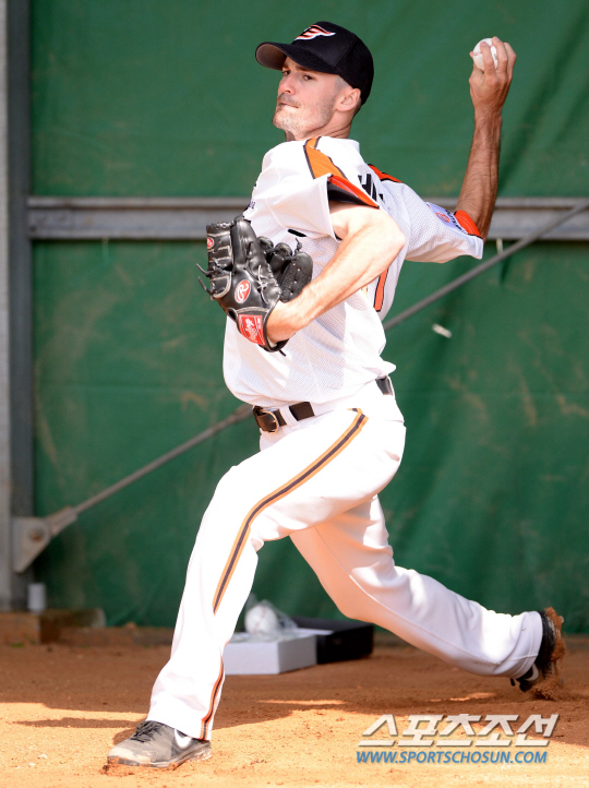 한화 이글스 선수단이 일본 오키나와 고친다 구장에서 2014 스프링캠프를 갖고 구슬땀을 흘리고 있다. 18일 진행된 훈련에서 클레이가 불펜피칭을 하고 있다. 한화는 지난달 16일부터 오키나와 고친다구장에서 전지훈련을 실시했다. 한화의 이번 전지훈련은 3월 6일까지 진행될 예정이고 남은 기간 동안은 오키나와 각지에서 훈련중인 KIA, SK, LG, 넥센, 삼성 등을 상대로 12차례 평가전을 치를 예정이다. 오키나와(일본)=허상욱 기자 wook@sportschosun.com/2014.02.18/