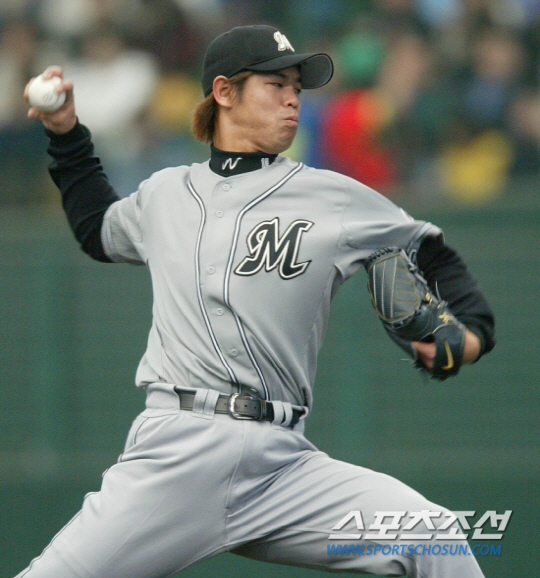 지바 롯데 소속으로 2004년 3월 27일 세이부 라이온즈와의 정규시즌 개막전에 선발 등판한 시미즈 나오유키. 김경민 기자 kyungmin@