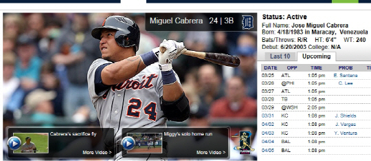 | 미겔 카브레라가 ESPN 선정 2014 톱10 1루수에서 1위를 차지했다. 사진캡처=메이저리그 디트로이트 홈페이지 |