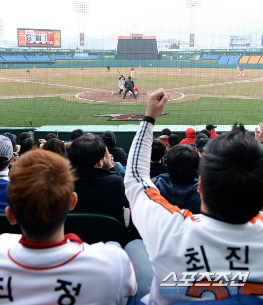 9일 대전 한밭야구장에서 프로야구 한화와 SK의 시범경기 2연전 두 번째 경기가 펼쳐졌다. 많은 야구팬들이 경기장을 찾아 야구를 관전하고 있다. 대전=송정헌 기자 songs@sportschosun.com/2014.03.09